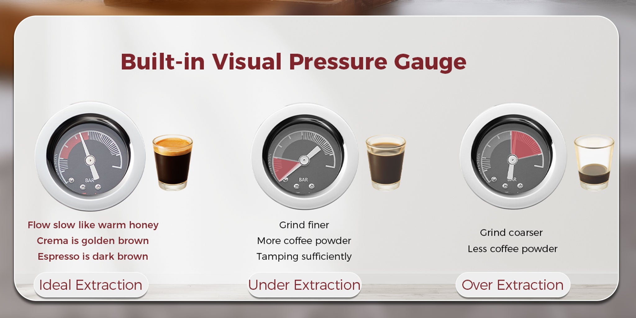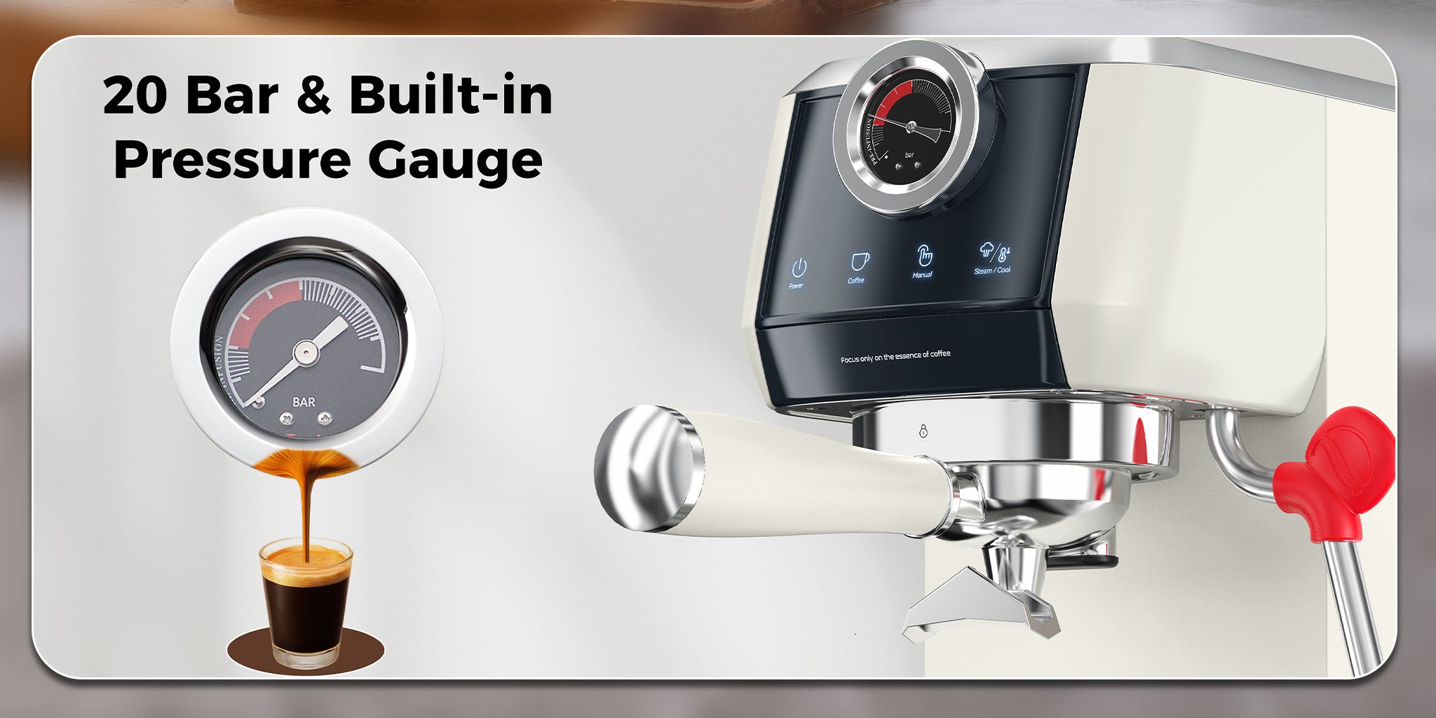 • [Touch Control & Visible Pressure Gauge] - The Tuni espresso machine features an intuitive touch control panel that makes it easy to navigate and customize your brewing settings. The built-in visible pressure gauge allows you to monitor the extraction process in real-time, ensuring precise pressure for a perfectly balanced espresso shot. This combination of modern touch controls and a traditional pressure gauge gives you full control over your espresso, making it simple to achieve barista-quality results at home.