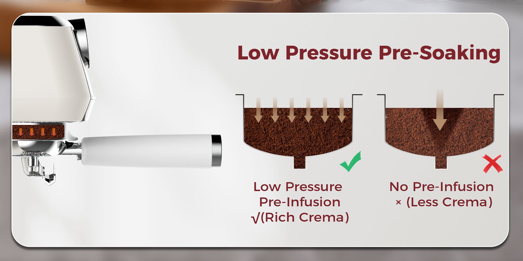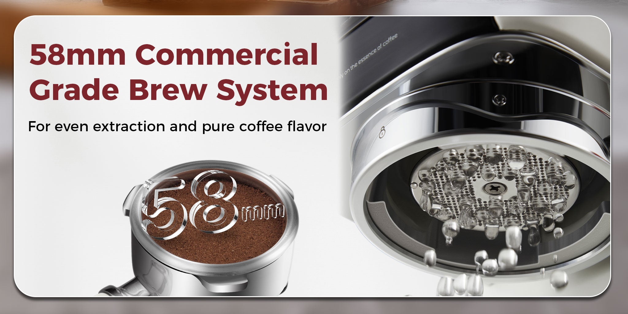 • [58mm Commercial Grade Brew System] - The 58mm commercial-grade stainless steel filter, compared to the standard 51mm filter, creates a thinner coffee layer and achieves higher extraction efficiency with the same amount of grounds. With its plastic-free 58mm brewing head and low-pressure pre-soaking function, it delivers a more thorough extraction, resulting in an espresso with a refined taste and rich crema.