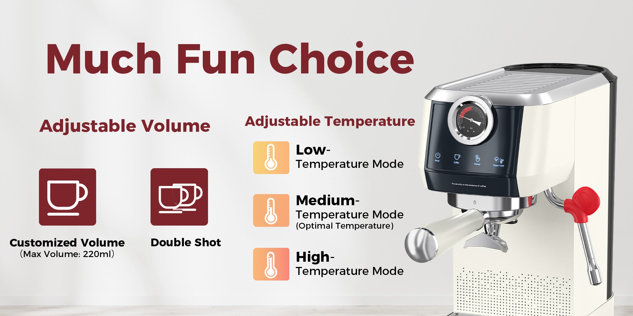• [Adjustable Volume & Temperature] - The instant thermal block heating system heats water in just 30 seconds, and you can customize the brew temperature and coffee volume to your liking. Additionally, the gentle pre-infusion blooms the espresso grounds for optimal extraction. This flexibility lets you enjoy your espresso exactly the way you like it, every time.