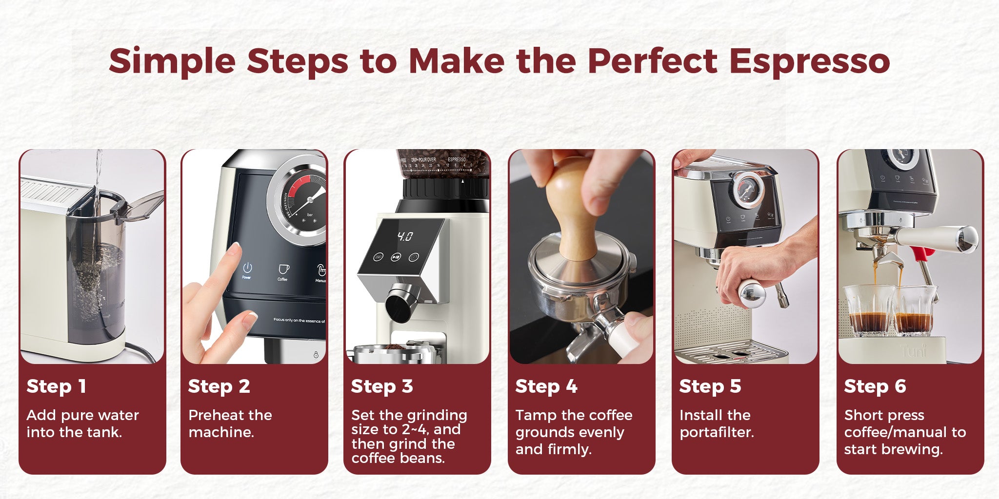 • [Package Includes & Care] 1 × Tuni Espresso Machine, 1 × Stainless Steel Powder Tamper,1 × 58mm Stainless Steel Portafilter, 1 × Single Cup Stainless Steel filter, 1 × Double Cup Stainless Steel filter, 1 ×Spoon, 1 × Stainless Steel Steam Wand (1&2 Hole Nozzle1), 1 × User Manual Tuni values your satisfaction. we're here for you whenever you need us. Purchase with confidence!
